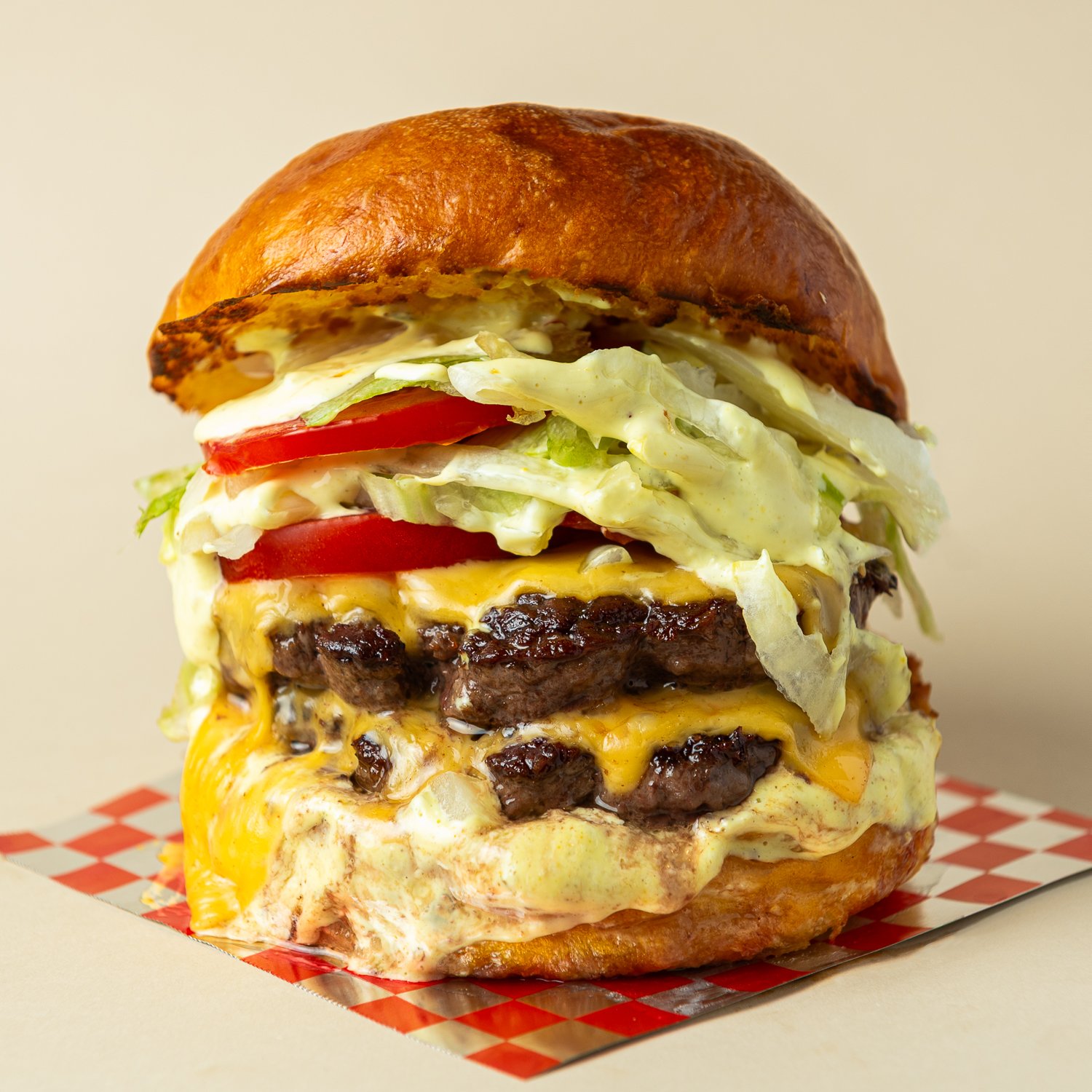 Doble medallón de nuestro blend especial 100% ternera, queso americano, huevo frito, cebolla caramelizada y mayonesa trufada.